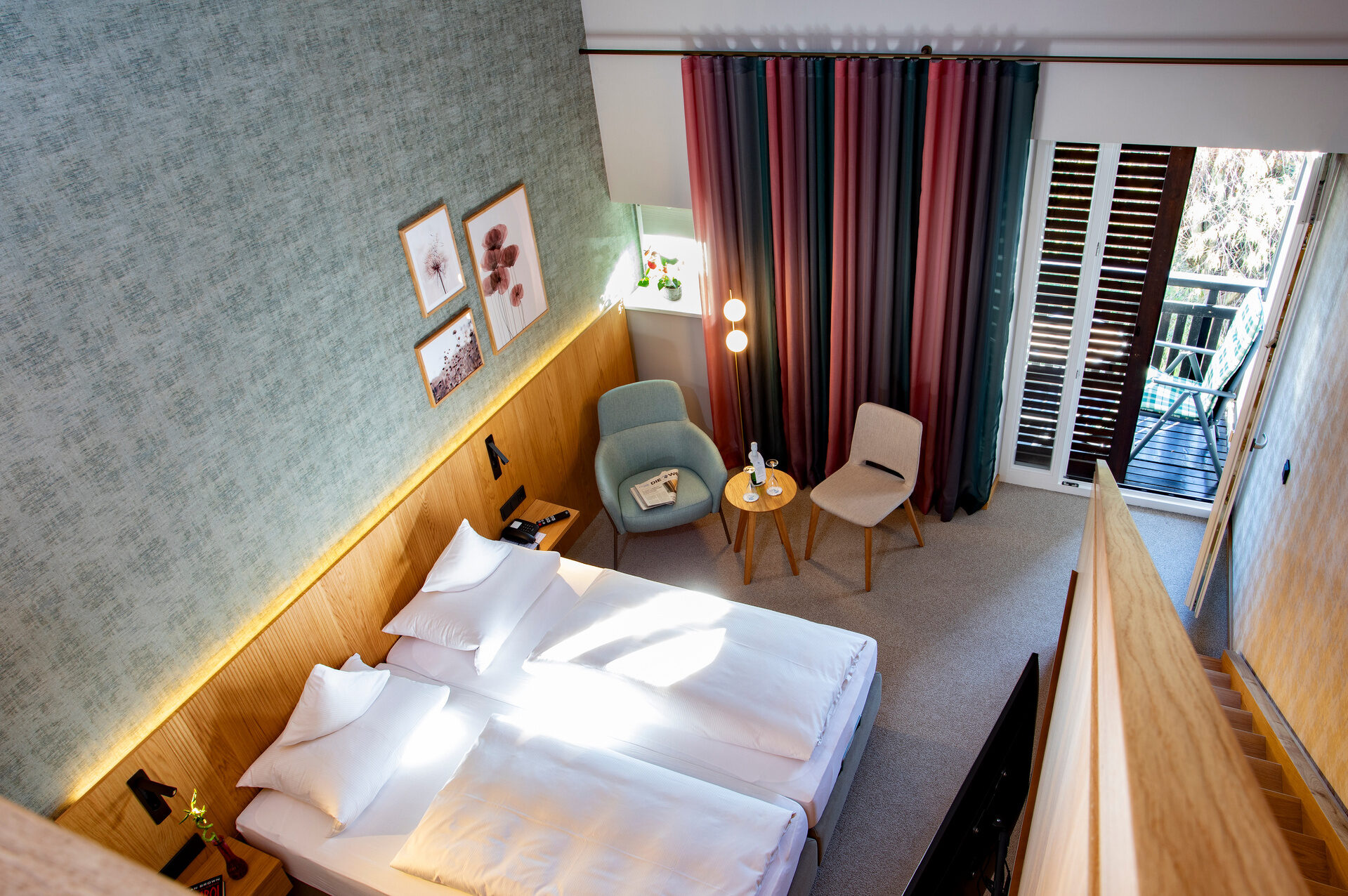 Was macht ein Zimmer zum Zuhause? Ganz einfach, die Kombination aus Licht Raum, ansprechenden Materialien, geschmackvolle Möbel, moderne Technik und natürlich die verführerische Aussicht (von der Nähe zur Rottal Terme gar nicht zu reden).
